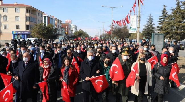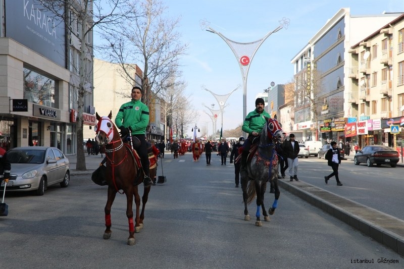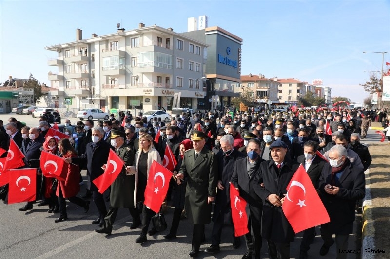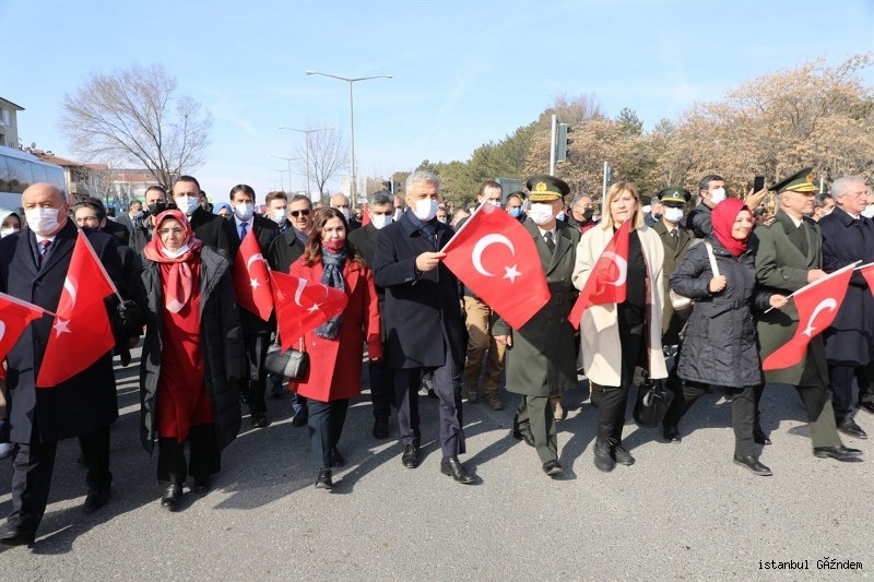 Çelenk sunma törenin ardından yapılan 13 Şubat Zafer Yürüyüşünde; Sayın Valimiz Mehmet Makas ve Eşi Hanımefendi Elif Makas, 3. Ordu Komutanı Korgeneral Yavuz Türkgenci ve Eşi, ilimiz Milletvekili Sayın Süleyman Karaman ve Eşi, ilimiz Milletvekili Sayın Burhan Çakır, 3. Ordu Kurmay Başkanı ve Garnizon Komutanı Tümgeneral Davut Ala ve Eşi, Erzincan Belediye Başkanı Sayın Bekir Aksun ve Eşi, Erzincan Cumhuriyet Başsavcısı Dr Ali Öztürk, Erzincan Adli Yargı Adalet Komisyonu Başkanı Halil Odabaş, EBYÜ Rektörü Prof.Dr. Akın Levent ve Eşi, Erzincan eski Milletvekili Sebahattin Karakelle, İstanbul’dan gelen Erzincan Konfederasyonu Genel Başkanı Nail Genç ve Başkan Yardımcıları Mehmet Gülnahar, Kenan Yılmaz, Yaşar Kıranlıoğlu, adli, idari ve askeri erkan, gaziler, siyasi parti ve sivil toplum kuruluşu temsilcileri, sporcular, cirit takımları, öğrenciler ve çok sayıda vatandaşımız Mehteran öncülüğünde ellerindeki Türk bayrakları ile Halit Paşa Caddesi'nden, Cumhuriyet Meydanı’na kadar yürüdüler. Zafer yürüyüşü renkli görüntülere sahne oldu.