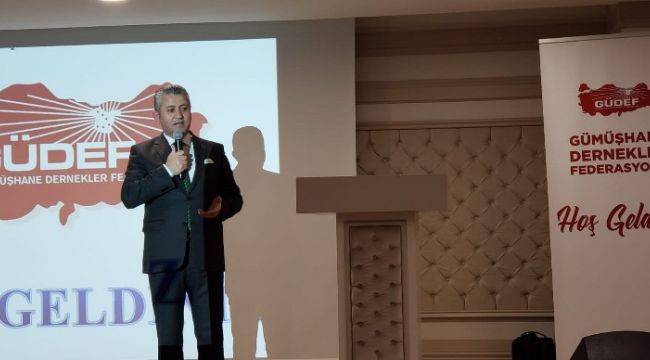 Federasyonumuzun kuruluşunda emeği geçen dernek başkanlarımıza, kurucular kuruluna, 13 yıldır hizmet eden federasyon başkanlarımız ve yönetim kurulu üyelerine, büyük bir aile olmamız için üye olan ve bugüne kadar gayret sarf eden tüm dernek başkanlarımız ve yönetimlerine, çalışmalarımızı her daim hemşerilerimize ulaştıran basın kuruluşlarımızın kıymetli çalışanlarına ve özellikler tüm çalışmalarımızda bizleri yalnız bırakmayan Gümüşhaneli hemşerilerimize teşekkür ediyorum. Federasyon ve derneklerimizden, başta Niyazi BAŞ başkan olmak üzere vefat eden tüm başkan ve yönetim kurulu üyelerimize Allahtan rahmet diliyorum” dedi.