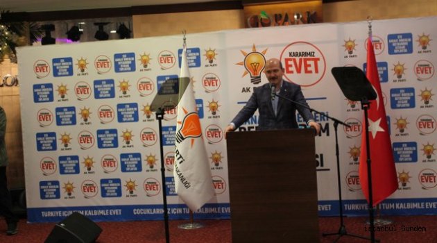 İçişleri Bakanı Süleyman Soylu dün önce Bayrampaşa Titanik Otelde Bayrampaşa' lı STK liderleri ve Kanaat önderleri ile buluşup neden EVET dememiz lazım ve sebepleri nelerdir diyerek her konuya değindi özellikle ALMAN ve HOLLANDA da dahil olmak üzere avrupa ülkelerinin DÜNYA' da güçlü bir TÜRKİYE görmek istemediklerini ve bunun için ÜLKEMİZİN BAKANLARININ ülkelerinde yaşayan TÜRKLER ile Buluşup 16 Nisan' da yapılacak olan referandum öncesi bilgilendimelerde bulunmaması için her türlü kirli oyuna başvurduklarının altını çizdi.İçişleri Bakanı Süleyman Soylu bu gün Gaziosmanpaşa'da önce miting yaparak halk ile buluştu sonrasında Gopark Granda Salonda İş adamları ve Sivil Toplum Örgütleri ile buluştu.İçişleri Bakanı Soylu Gopark Grand Salonda Gaziosmanpaşa' nın "STK" ve Kanaat Önderleri ile buluşup güçlü ve kudretli bir TÜRKİYE için 16 Nisan' da yaplıcak oylan Anayasa referandumunda evet dememiz için bir çok sebep var diyerek konuşmasına devam etti.Bakan Soylu TÜRKİYE Yüz Yıllardır Dünya' nın ve Bölgenin neresinde olursa olsun haksızlığa zulme uğrayan DİNİ, MEZHEBİ ve SİYASİ görüşü ne olursa olsun herkese kucak açtı, Herkesin yardımına koştu bu yardımlar kimi zaman madden kimi zaman manen hep oldu ve halen daha bu yardımlarımızı sürdürüyoruz dedi.Bakan Soylu CHP Genel Başkanı Kılıçdaroğlu benim söylemek istediğim ve söyleyemediklerimi söyleyerek inan AK Parti Hükümetinin neden referandumda EVET dememiz gerektiğini daha iyi anlatıyor Kılıçdaroğlu bir radyo programında düşün bir ülkenin Başbakanı başka partiden Cumhurbaşkanı başka bir partiden ozaman ne olur kaos olur diyerek referandumun ve Anayasa değişikliğinin ne kadar gerekli olduğunu görüyorsunuz dedi.Bakan Soylu güçlü TÜRKİYE icin Güçlü bir yönetime ihtiyaç var bunun için 16 Nisan'da yapılacak olan referandumu anlatmak için Gaziosmanpaşa' da şu an konuşuyor.Haber. Foto. Yalçın Arıcı
