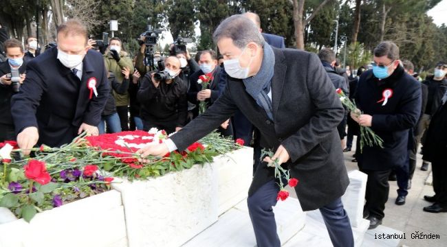 Şehitlikte bulunan ebedi Eyüpsultanlı Mehmet Akif Ersoy'un kabri başında düzenlenen programa Eyüpsultan Belediye Başkanı Deniz Köken ile birlikte İstanbul Valisi Ali Yerlikaya, 1. Ordu Komutanlığı adına 3. Kolordu Komutanı Korgeneral Kemal Yeni, İBB Başkanı Ekrem İmamoğlu ve kamu kurum - kuruluşlarının temsilcileri katıldı.