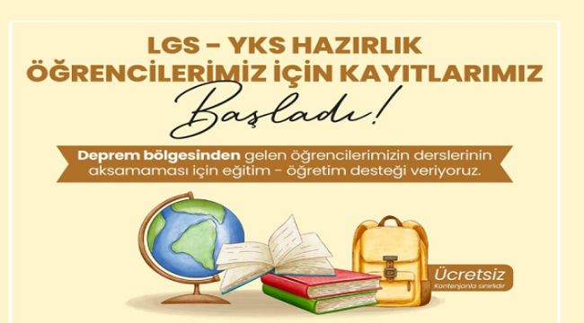 Maltepe Belediyesi Kütüphane Müdürlüğü, Yükseköğretim Kurumları Sınavı’na (YKS) ve Liselere Geçiş Sınavı’na (LGS) hazırlanan depremzede öğrencilere ücretsiz eğitim desteği verecek. LGS ve YKS’ye hazırlanan öğrencilerin eğitim-öğretim faaliyetlerinin aksamaması için ücretsiz kayıt başvuruları başladı. Öğrenciler YKS dersleri için Altayçeşme Mahallesi, Kışlalı Caddesi’nde bulunan Yaşar Kemal Kültür Merkezi’ne, LGS için İdealtepe Mahallesi, Mızrak Sokak, No: 4, Kat: 1’de bulunan Cumhuriyet Eğitim Merkezi’ne başvuru yapabilir. Detaylı bilgi 0216 549 10 13 ve 0216 208 96 98 numaralı telefondan alınabilir.