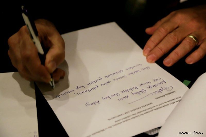 Sarıyer’de binlerce vatandaşı ilgilendiren tapu ve mülkiyet sorununun çözümü konusunda Mahalleler Birliği’nin Yaşar Kemal Kültür Merkezi’nde düzenlediği ve belediye başkan adaylarının imzalaması için hazırlanan ‘Taahhütname’ toplantısında Sarıyer’de belediye başkan adaylarının bazıları taahhütnamede yazılı olan maddelere bağlı kalacaklarına dair imza verdiler. CHP Sarıyer Belediye Başkan Adayı Mustafa Oktay Aksu, toplantıda yaptığı konuşmanın ardından taahhütnamede sıralanan maddelere, ‘Hangi kurum olursa olsun gerekirse sabahlara kadar kapılarda yatacak ve haklarınızla ilgili sizlerden daha çok mücadele edeceğim’ maddesini de ekleyerek imzaladı.